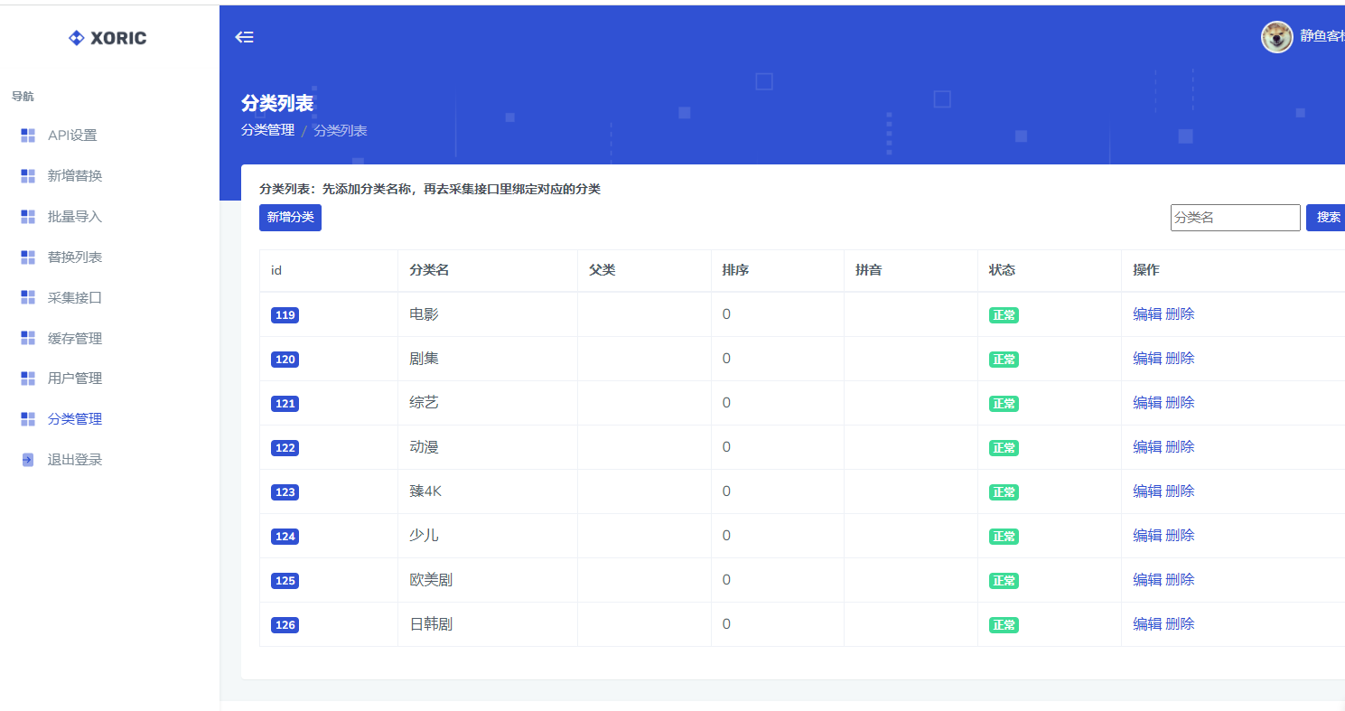 6、可以自定义筛选分类,用于苹果CMS用户采集时展示的分类筛选功能。