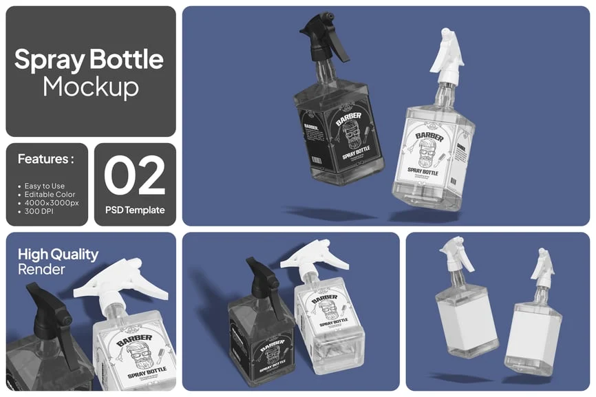 文章标题:理发师喷雾瓶包装设计样机 (PSD)