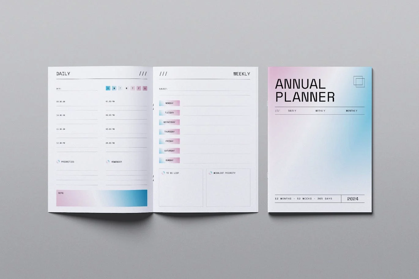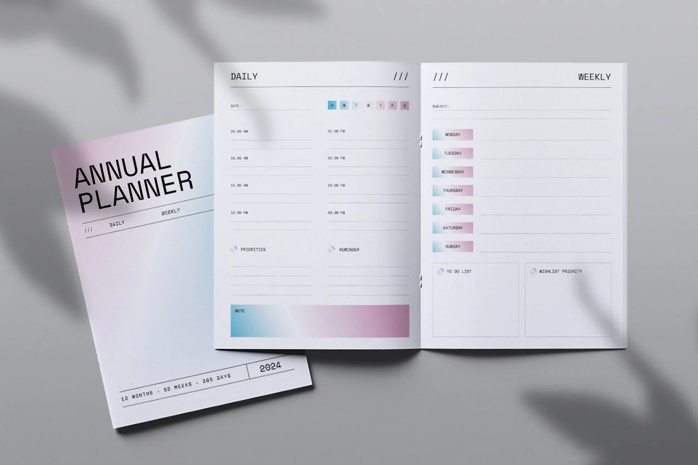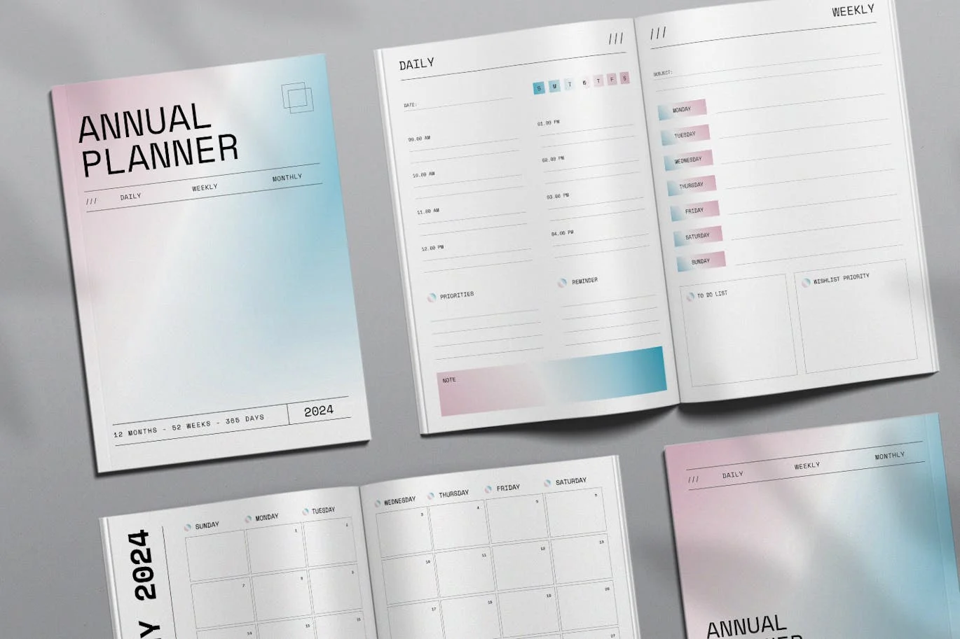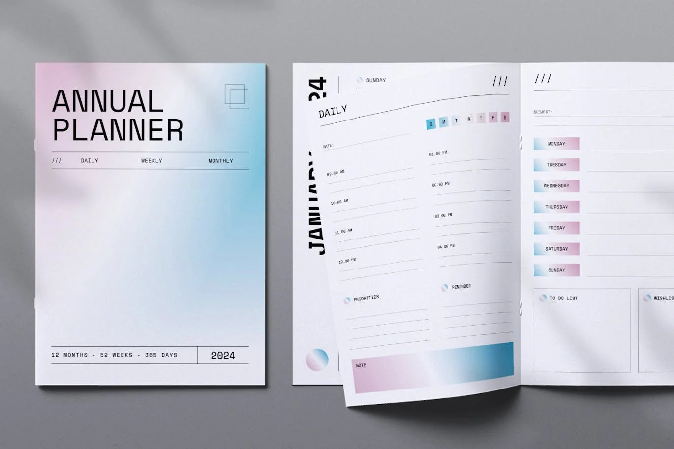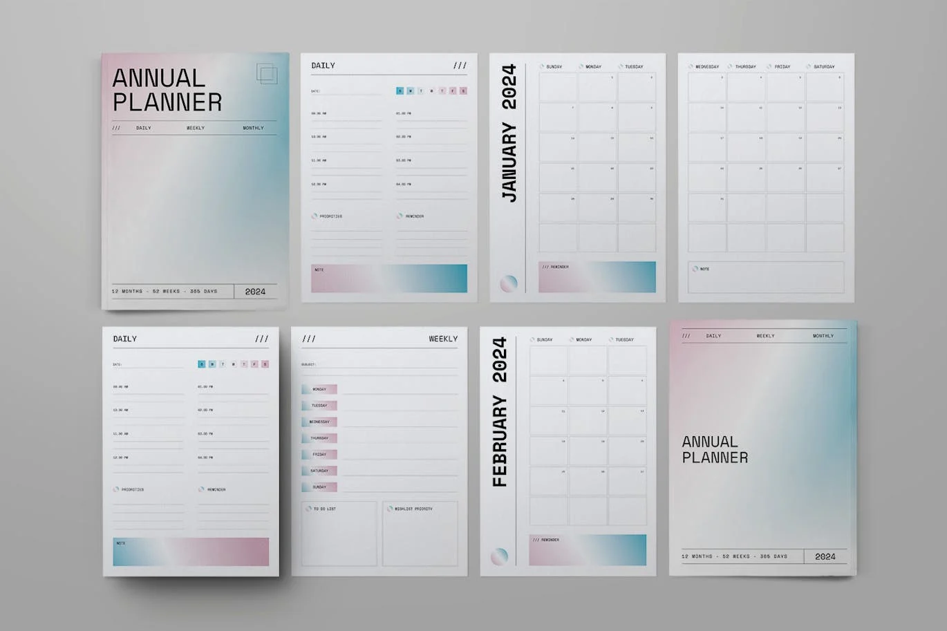 **Annual Planner 2024** 是专业、清新、干净的 InDesign模板。