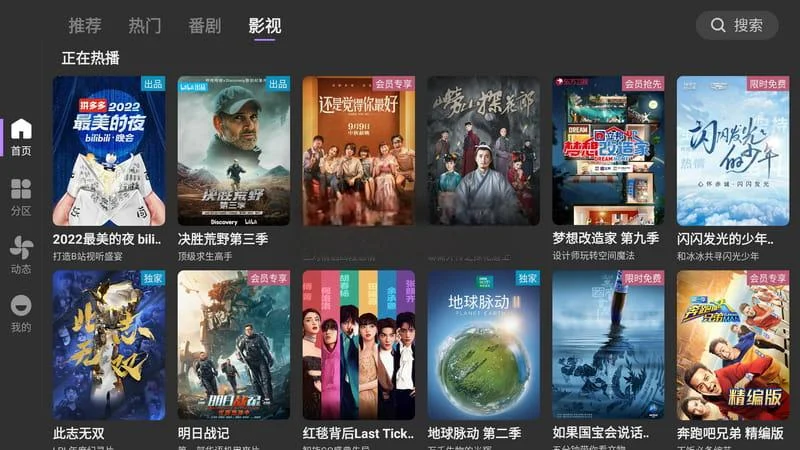 哔哩哔哩tv版是第一个电视端第三方版,各方面还行,很多人一直在使用,可惜无法观看动态视频。于是有了第二个三方版-BV,可以完美观看动态视频,但是又仅仅只能观看动态和热门推荐视频。