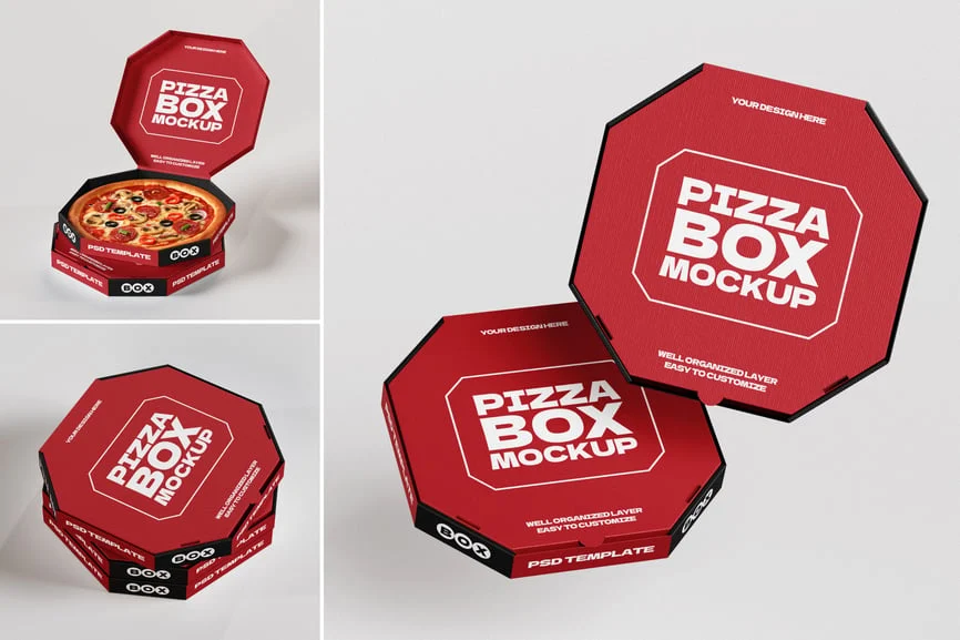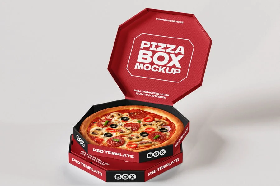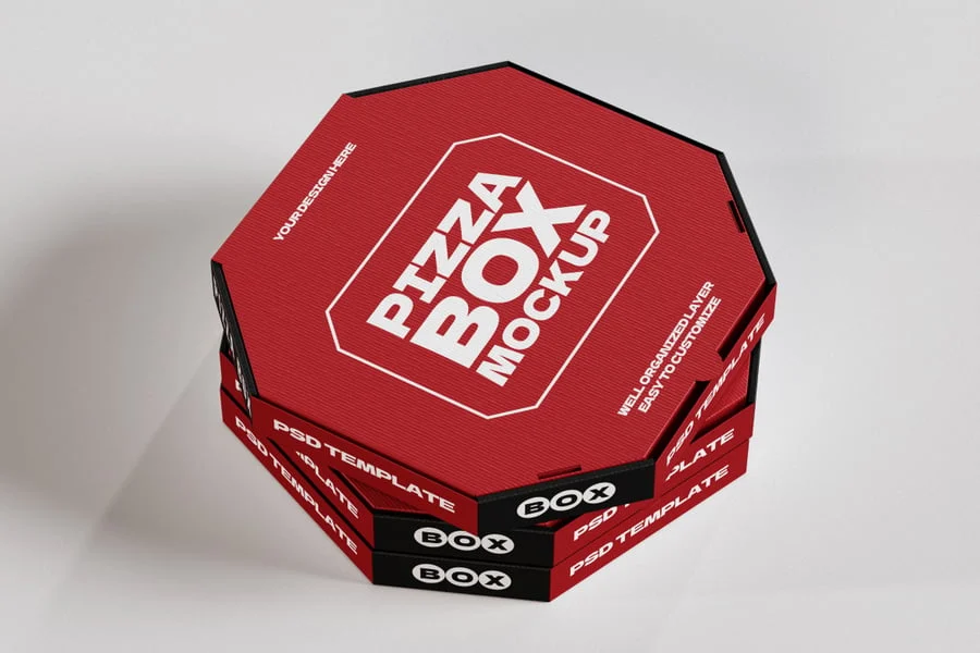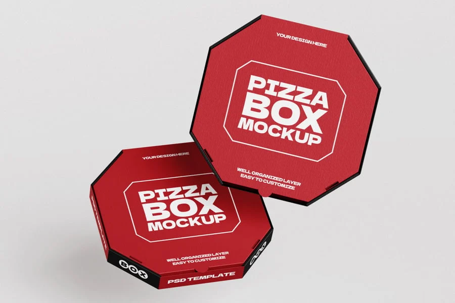 披萨盒模型采用独特的八角形盒体设计,为披萨和快餐包装展示增添了现代感和吸睛感。PSD 文件采用高分辨率创建,包含智能对象和可快速编辑的有序图层,让您轻松自定义品牌标识、颜色和徽标。凭借多角度、逼真的阴影和细致的纹理,该模型以专业而真实的方式展现了餐厅包装的概念。