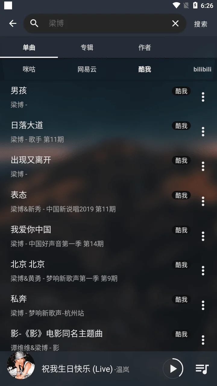 支持单曲、专辑、作者三种搜索方式,非常方便,你能以极快的速度看到哪个平台能播放哪些对应的歌曲。