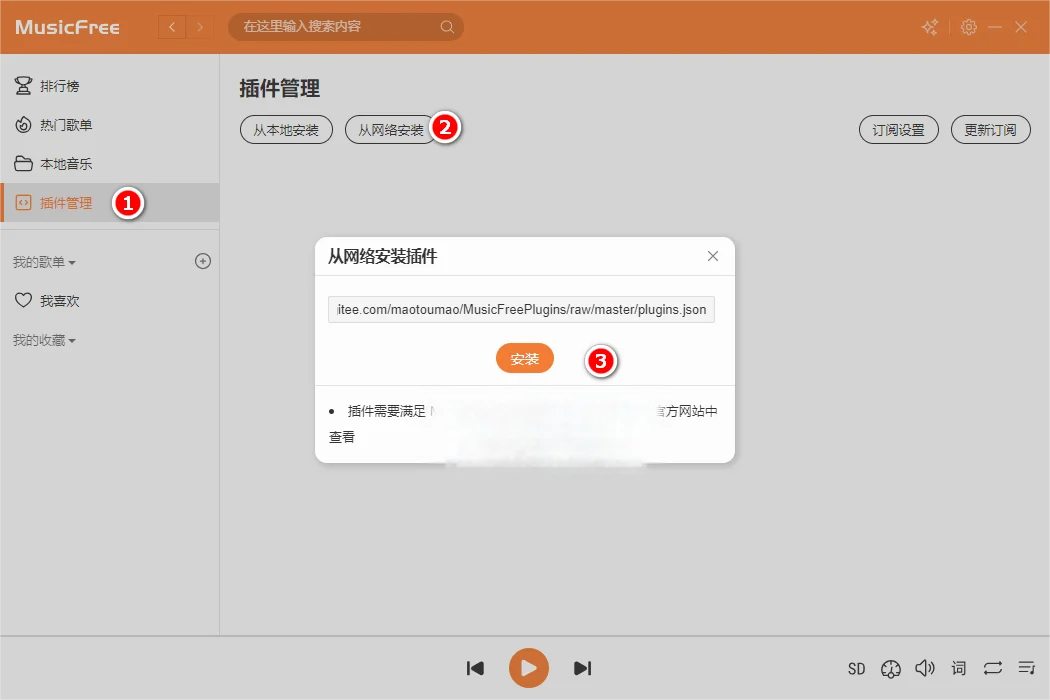 咱们主要还是对插件化功能来听歌比较感兴趣,安装插件来获取网络音源,其实也就是咱们所说的导入接口。
