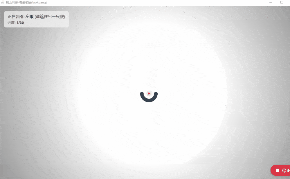 训练过程就是盯着软件界面的“C”字由小变大、由大变小,然后左右眼轮换着来看。