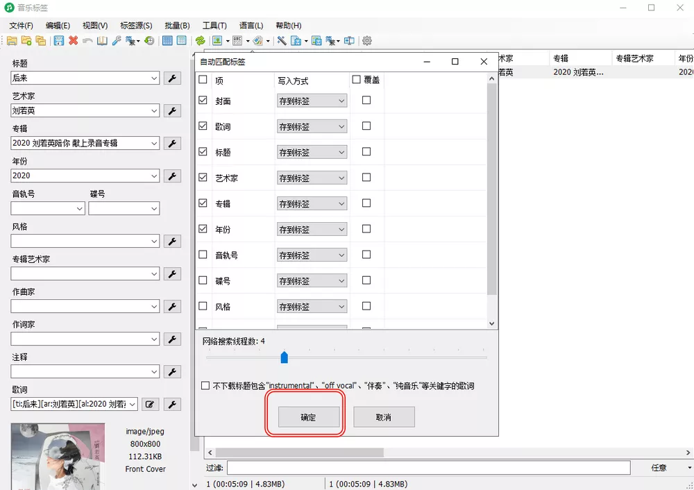 选择后点击确定,软件就会立马对这些音乐文件写入各种音乐信息。