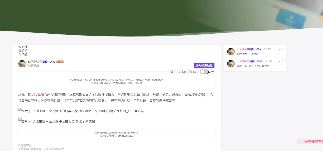 文章标题:文章页隐藏侧边栏按钮(方法二) - 子比主题美化教程