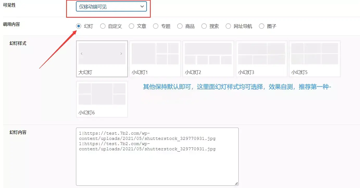 - ②幻灯片和推荐圈子只是其中两个模块,还有其他模块也可尝试;