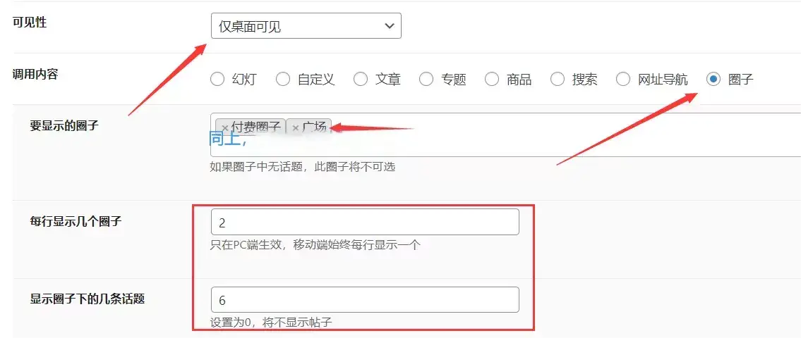 - ①目前的教程设置后仅在广场圈子显示,但是可依据该方法直接所有圈子显示