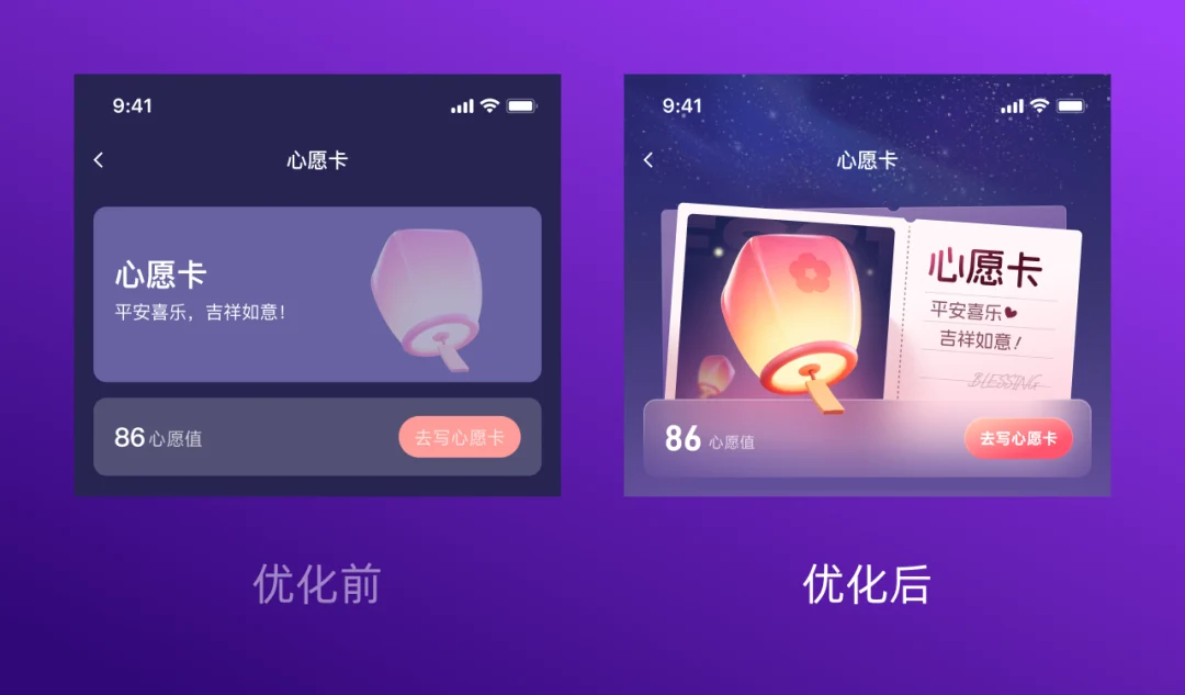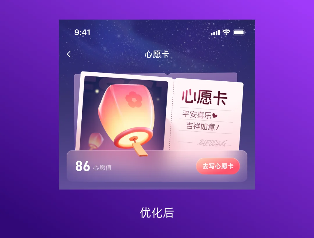 这是心愿卡页面的视觉重心——头部,我们看优化后的设计: