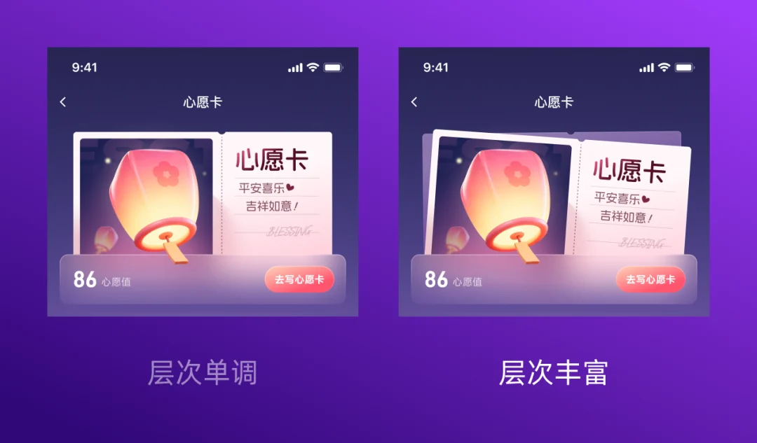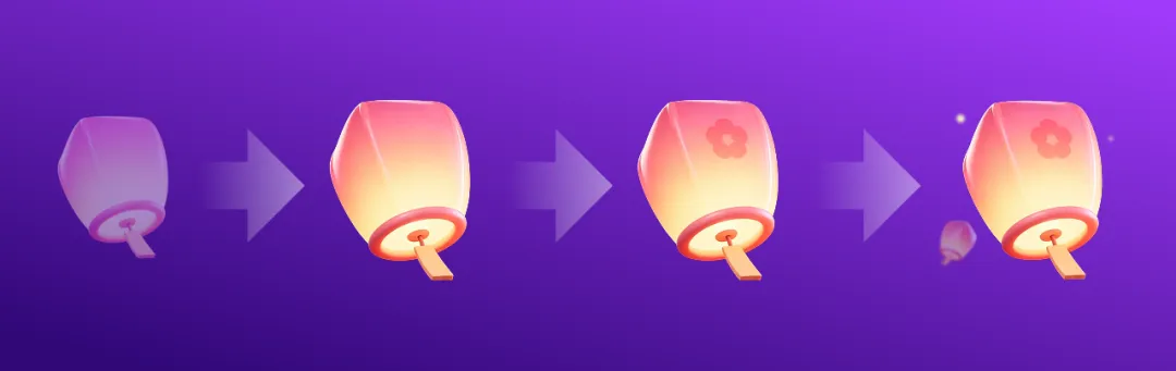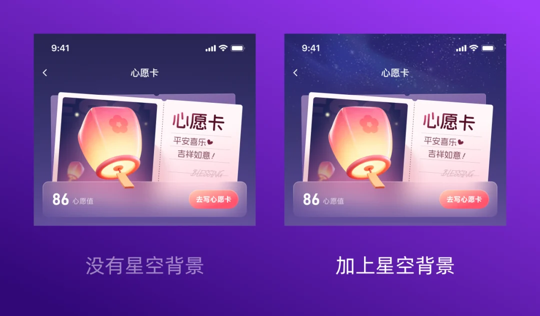 晴朗星空下仰视孔明灯许愿的场景,在这次的案例里展现得淋漓尽致。拿捏细节,你的设计也可以情绪价值拉满!