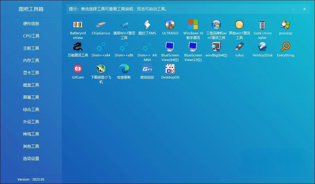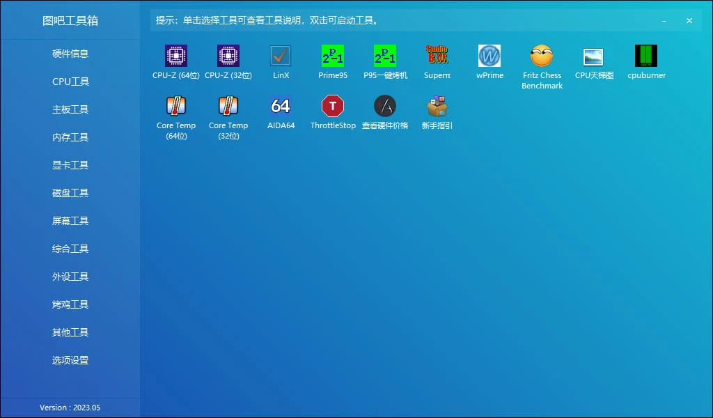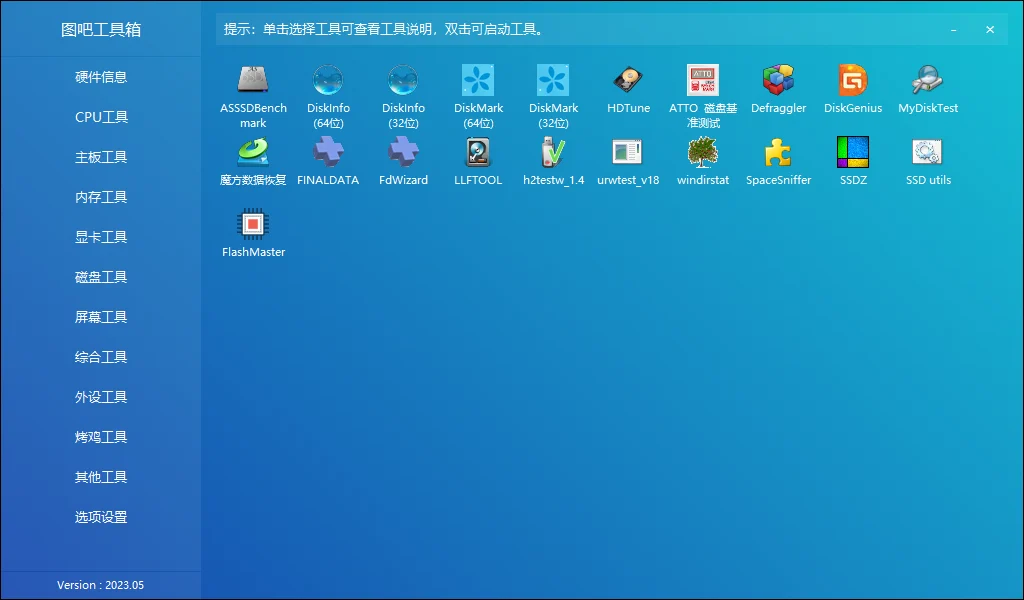 开源的、免费、绿色、纯净的硬件检测工具合集,这是它的特点也是它的简介。为什么说是工具合集呢,因为这个工具箱的所有功能都是由一个个单独的软件集合起来的,里面所有功能都是已经下载到本地的软件,所以几乎无需网络也能使用。