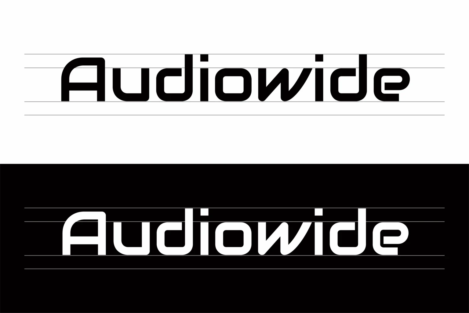 如图1所示,在纯白背景与两条装饰线的衬托下,“Audiowide”字样直观地展现了最标志性的特征。字体由粗细均匀的“管状”笔画构成,所有笔画的转角与末端都经过了柔和而彻底的圆角处理,无一锐角。这使得字母形态仿佛由充气的软管或光滑的实体构件搭建而成,在“A”、“d”、“o”等字母上体现得尤为明显。这种设计在保留几何无衬线字体力量感与稳定性的同时,注入了亲和、流畅且略带复古感的科技美学,避免了同类字体常有的冰冷与机械感。