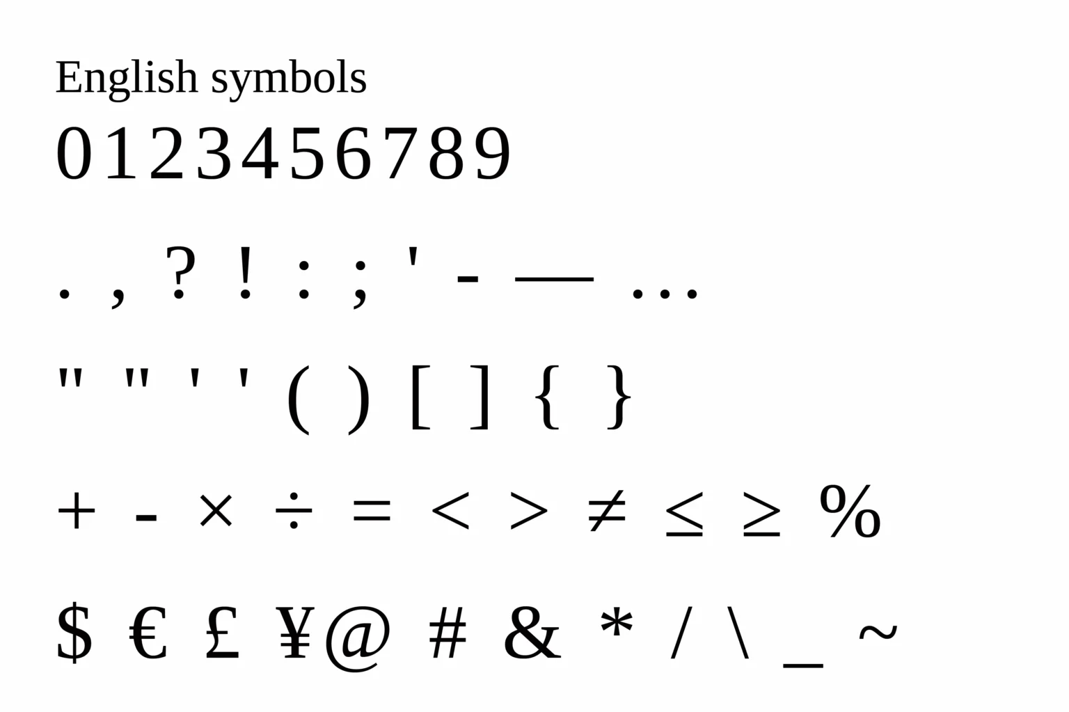 图3所展示的庞大英文符号集,仅仅是Tinos强大字符支持能力的冰山一角。真正优势在于支持泛欧洲WGL(Windows Glyph List)字符集。这意味着它除了图中展示的标准符号、数字、货币符号外,还内置了对包括西欧、中欧、东欧、波罗的海等多种语言特殊字符的广泛支持。这种内置的多语言兼容性,使得开发者无需为不同语言寻找多个替换字体,一份文档即可在全球多数Windows系统上保持正确显示,极大地简化了国际化部署的复杂度。