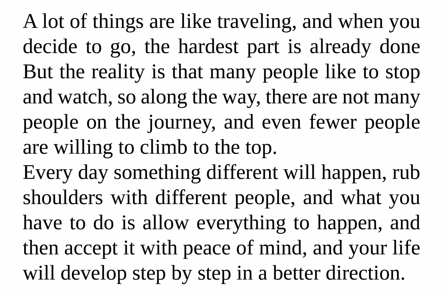 图4的段落排版是对“屏幕可读性”与“文本适用性”的最有力证明。在这段关于旅行与人生的哲思长文中,Tinos展现了一款优秀屏幕正文字体的所有特质。均匀舒适的字间距、合理的行高、清晰而不过分张扬的字形,共同构成了一块灰度平稳、节奏宁静的文本区域。阅读时视线流畅,长时间阅读不易疲劳。2013年对字体Hinting(微调)的更新,进一步优化了其在各种屏幕分辨率与大小下的渲染效果,确保了从桌面显示器到移动设备的清晰体验。
