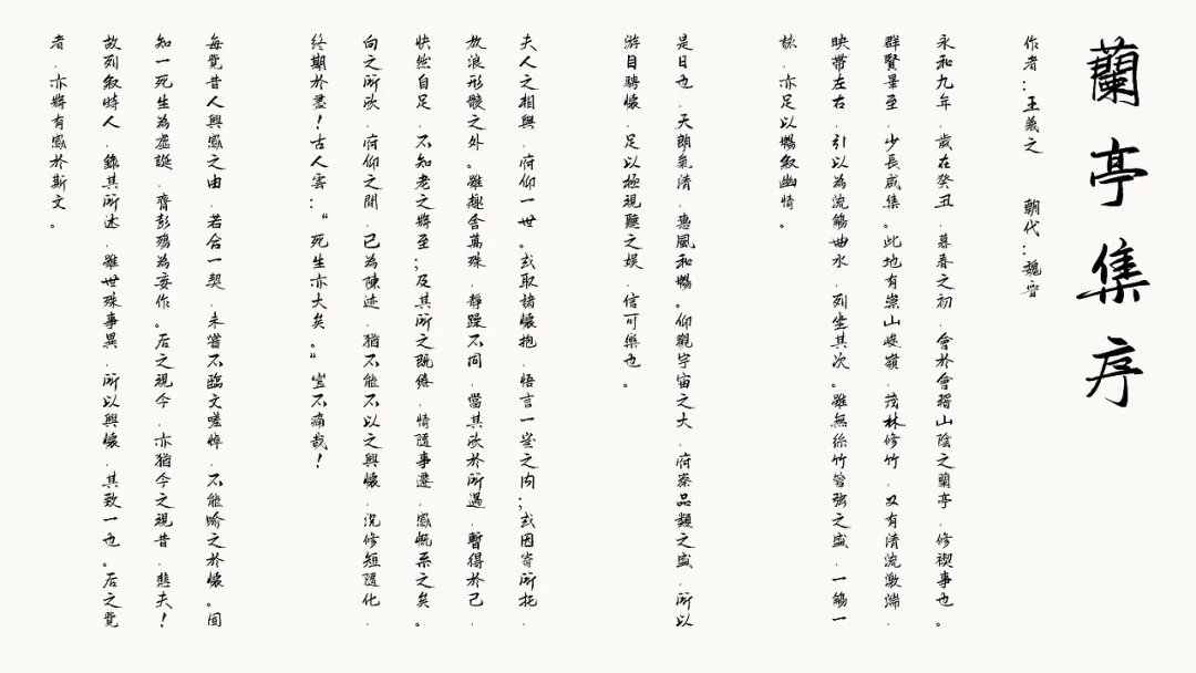 如图所示,字体整体为手写书法风格,笔画带有自然的提按与速度感。不同于狂放的草书,字形在洒脱中保持了较好的结构规整性与一致性,字面大小均匀,行列对齐整齐。这种“书写感”与“可控性”的结合,既能传递手写的人文温度,又在一定程度上满足了基础排版对齐的需求,非常适合用于需要营造手作感、文化感或亲切氛围的标题、短句等场景。