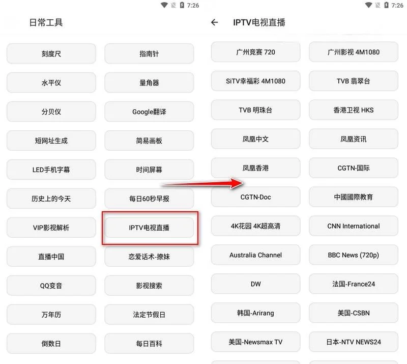 软件除了影视点播资源外,还惊喜的发现也整合了直播功能,而且蘋道相当丰富。