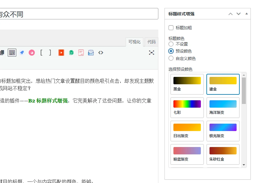 文章标题:【原创】B2 标题样式增强插件:让你的文章标题从此与众不同