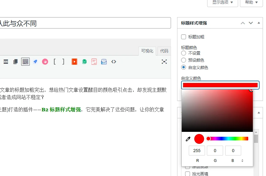 你是否在使用 B2 主题时,遇到过这样的困扰:想给重要文章的标题加粗突出,想给热门文章设置醒目的颜色吸引点击,却发现主题默认不支持这些功能?修改主题代码又担心升级后丢失,或者造成网站不稳定?