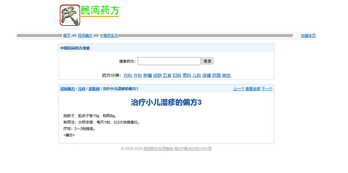 民间药方8000+数据和网站程序,上传至服务器即可使用。
