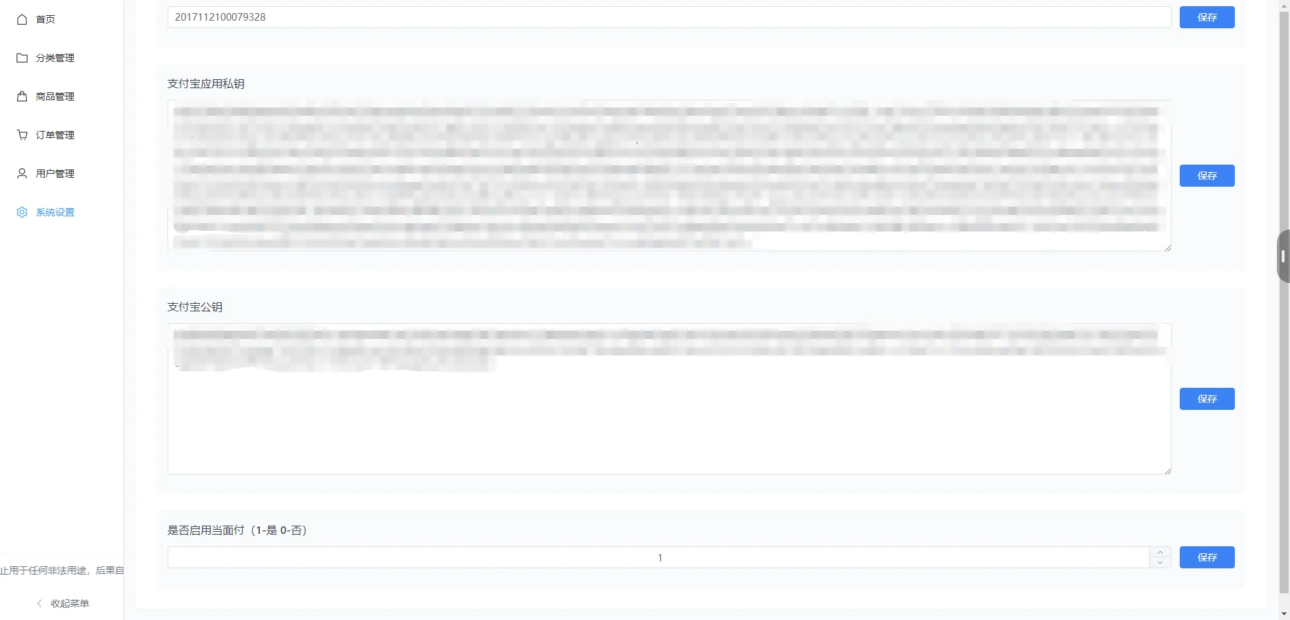 支付:微信官方、支付宝官方(手机网站支付和当面付)、易支付,码支付,可对接个人收款码