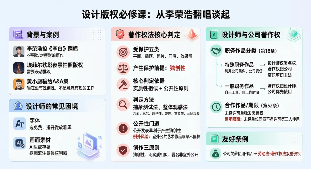 那除了李荣浩,身为设计师,我也很烦有关版权的问题,大部分商业设计师虽然不是版权的创作方,但却是常见的侵权方,所以想干脆趁此机会给大家补补《著作权法》的课。