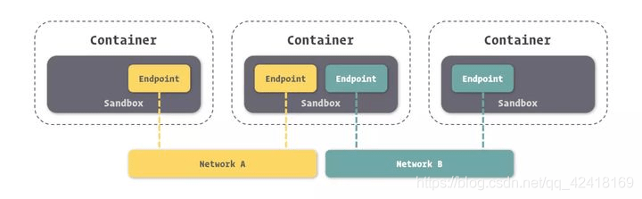 这三者形成Docker网络核心模型,也就是容器网络模型(Container Network Model)。