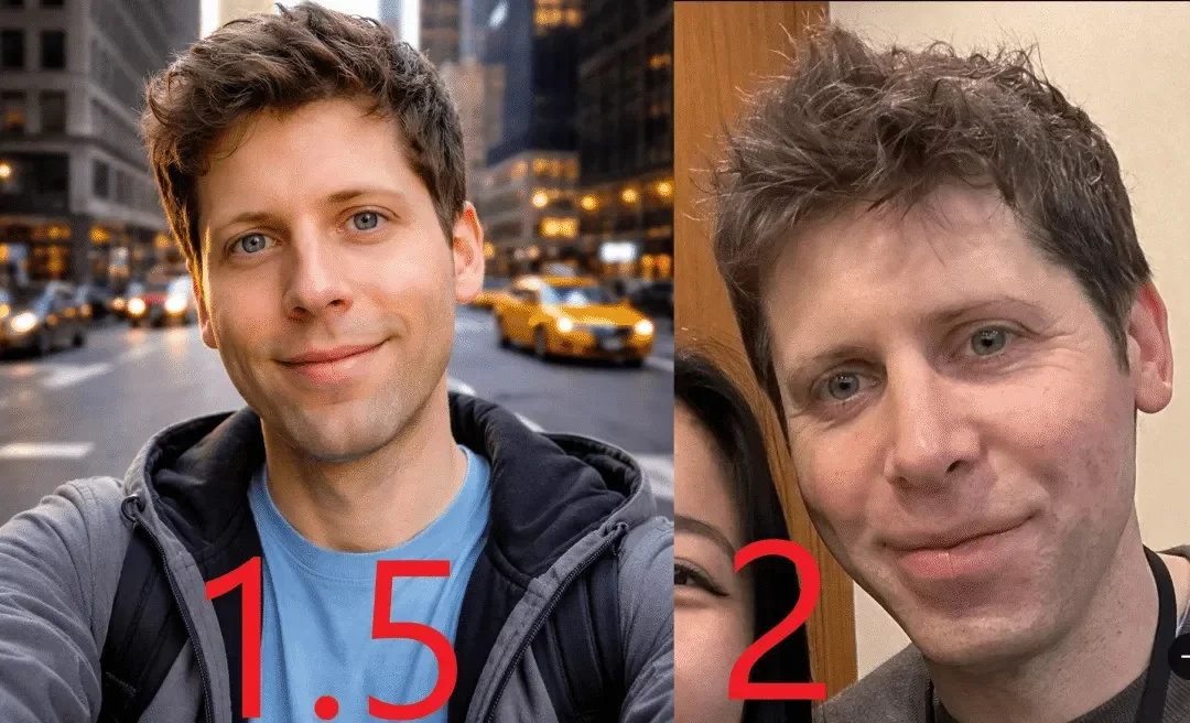 如果用 1.5 和 2 生成 Sam Altman 对比你就能发现,2 没有那种卡通质感,而是更接近真人,有明显的皱纹和皮肤油光毛孔。