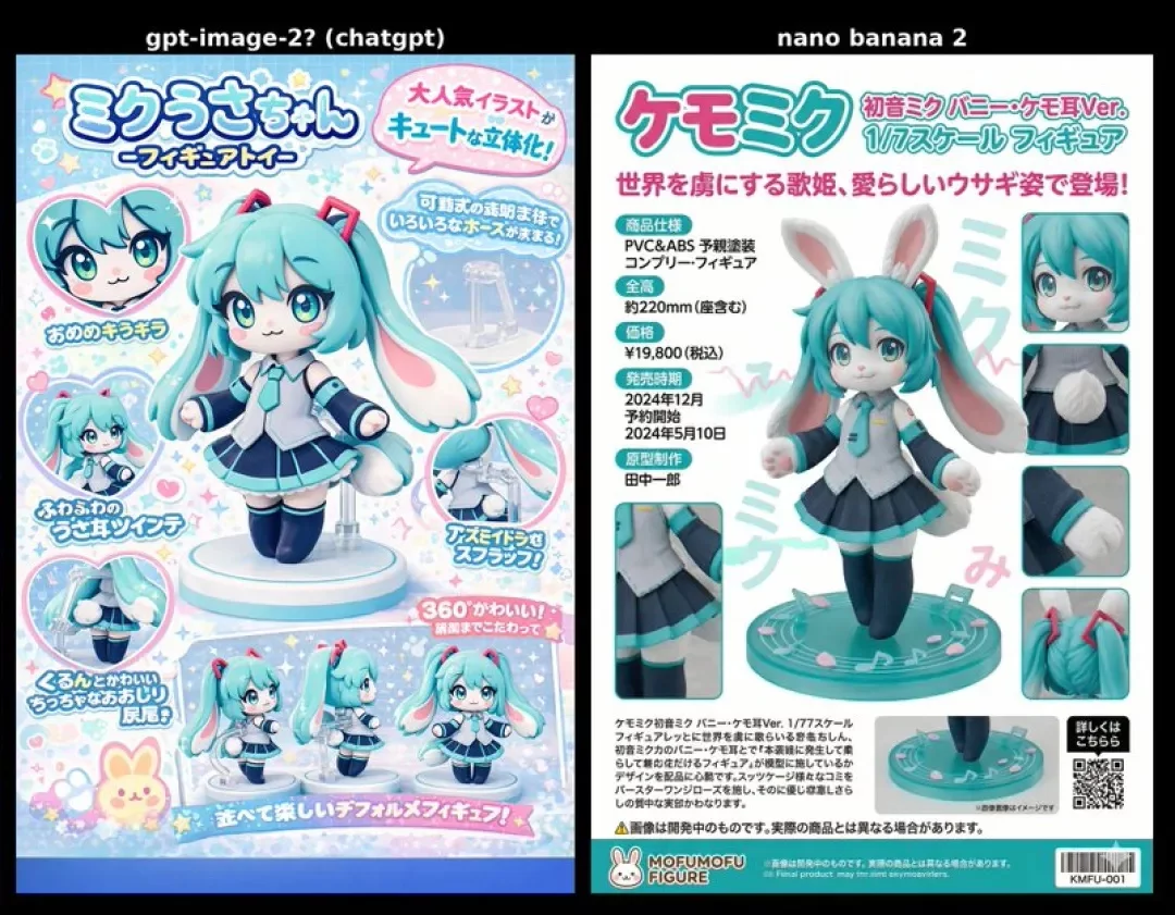 从 X 网友 @grmchn4ai 这个高信息量的手办海报场景对比来看,Nano Banana 2 的文字版式相对一般,而 GPT Image 2 在细节锐利度、文字清晰度,以及对版式和色彩的美学上更占优势。