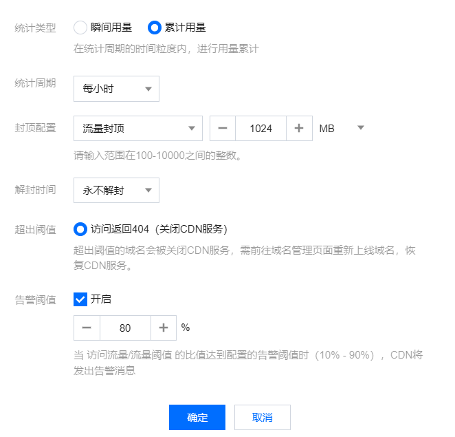 设置一下腾讯云CDN自带的用量封顶: