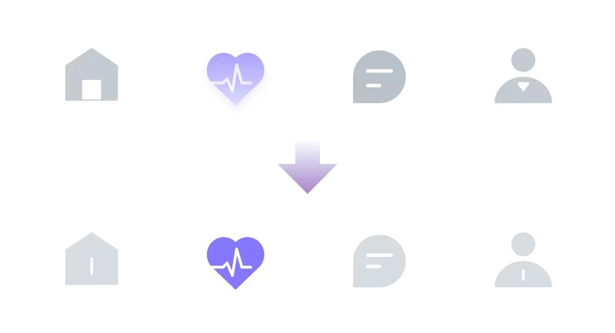 优化前的底部图标设计不统一,具体而言,没有做到白色负空间线面的一致性,需要优化设计。