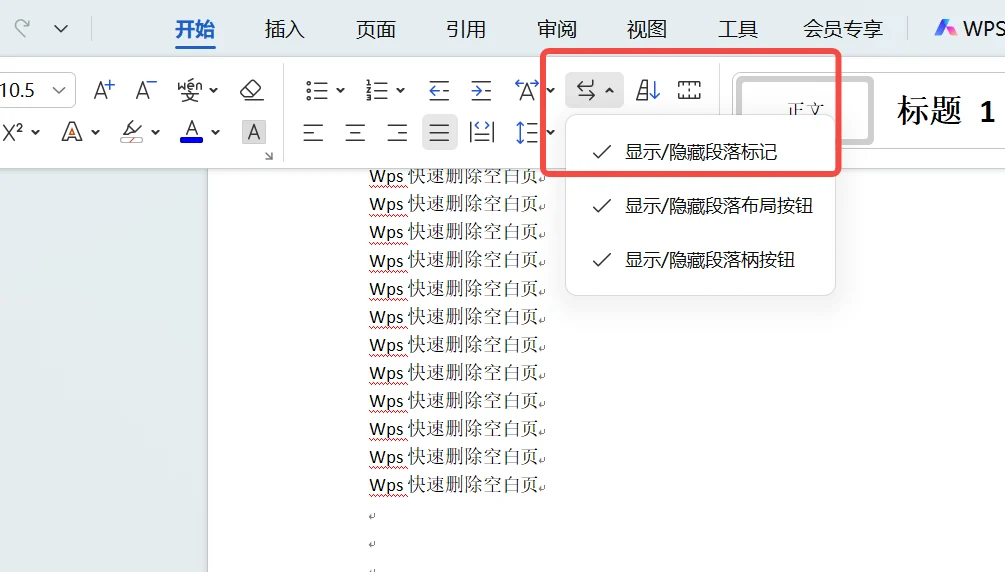 按键盘 Ctrl+Shift+8,或点击菜单栏「启动」→ 段落区域的 ¶ 按钮。此时文档中所有隐藏的段落标记、空格、制表符都会显示出来。