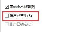 6、然后取消勾选下方的“用户已禁用”就可以了。