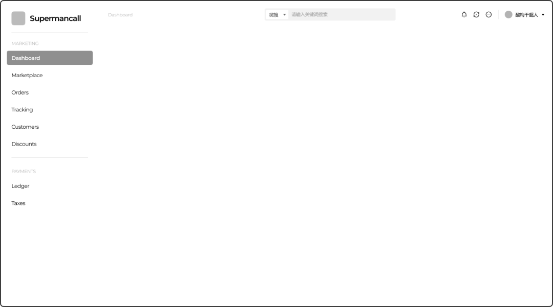 B 端全局框架即项目中常驻核心组件的设计与布局结果,包括导航栏、顶部栏、悬浮层、内容区域等,最常见的布局如下图所示。