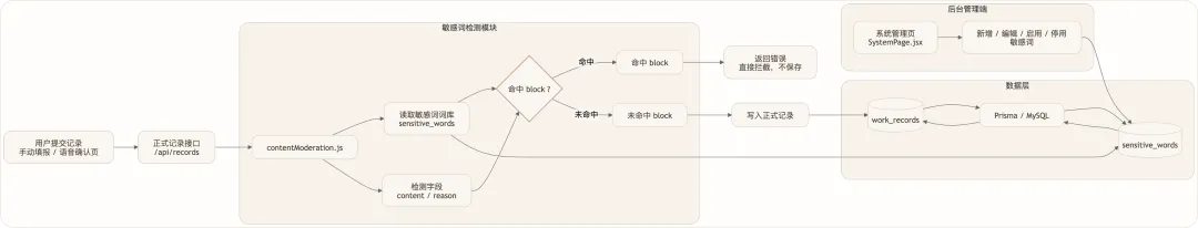 - 正式记录层 :敏感词检测、业务校验与最终入库