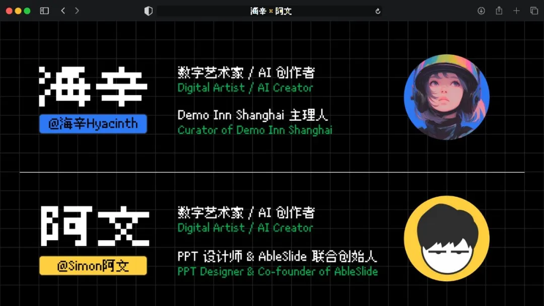 ————大家好,我们是海辛和阿文。我们是数字艺术家,也是一对和AI一起创作的搭档。