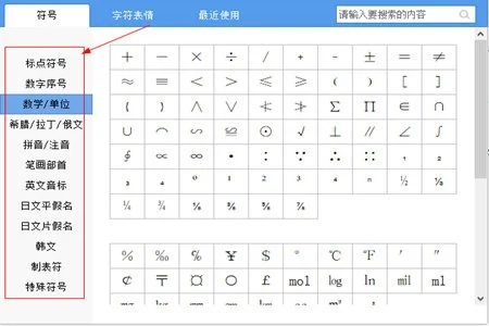 符号界面中会出现用户需要的各种特殊符号,除常见标点符号,还包括数字序号、数学单位、拼音、各种外文等,可以满足大家各种输入需求,尤其是想要取网名的用户,可在里面选择喜欢的符号,点击对应符号即可输入。