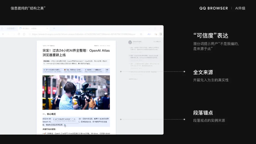 30年过去了,浏览器类产品在AI技术的狂飙突进下,终迎来新生。已诞生15年的QQ浏览器PC版,在今年也迎来了它的AI升级,在「浏览器+AI插件」和「AI原生浏览器」并行的当下,也探索了让AI“智感”在用户体验旅程中全方位的融入。