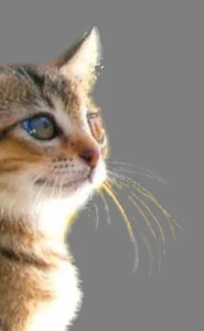 我们提到过画笔大小应能覆盖物体边缘,如果有毛发也应该覆盖毛发,但这只能针对类似小狗的"短毛"有效,如下左图中小猫的胡子超出其身体很多,如果也要完全覆盖则要使用很大的画笔,那不切合实际。遇到这种"长毛"的情况时,遵循以下原则:先绘制主体部分并填充,之后单独按照"长毛"的走向使用画笔绘制,画笔大小控制在毛发宽度的2~3倍左右。如下图所示。预览的效果如下图。