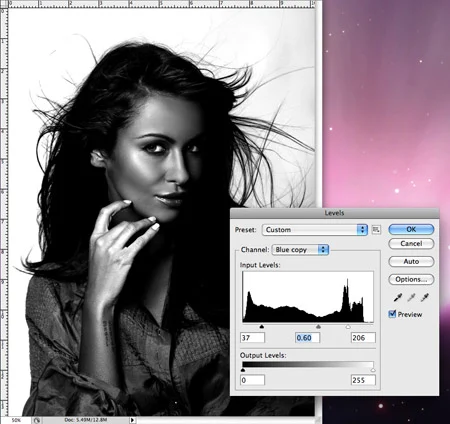 效果最好的照片呢,当然是来自那些专业摄影棚,因为他们会以纯色为背景拍片子。这类片子可以让软件更加容易的找到对象的边缘,但是要抠出完美无损的头发丝效果还是略微有些棘手的。在这个例子当中,我们将利用传统的通道抠图法来把这个有着飘逸长发的萌妹纸给抠出来,放到一个更加有态度的背景下。