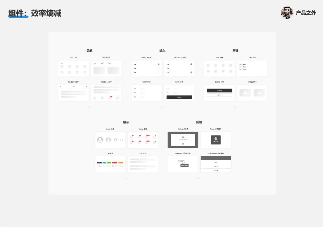常见的 Axure 元件库、前端组件库、功能交互库、需求文档模版等,都是模版思维的具体呈现。