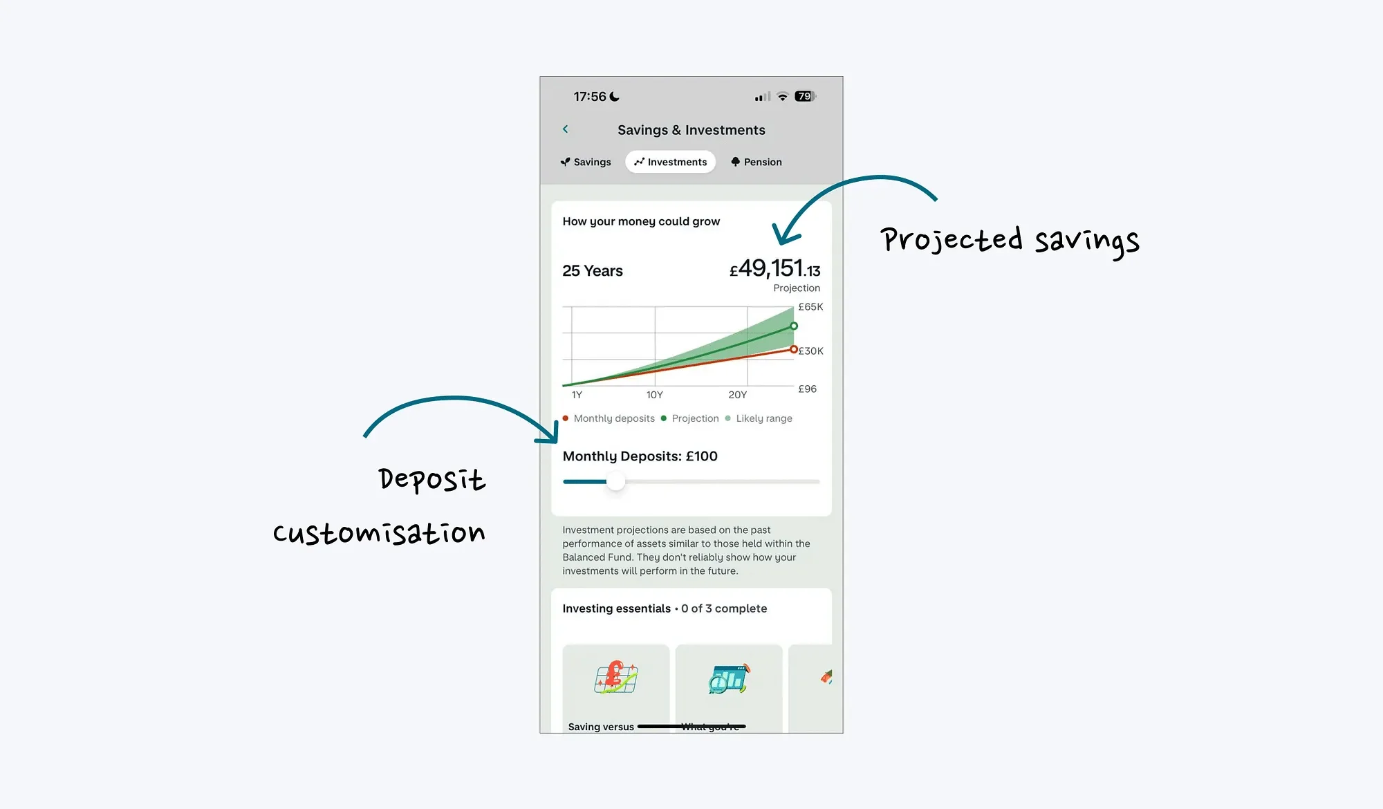 当 Monzo 向您展示每月 100 英镑在 25 年后变成 46,000 英镑(平均回报率)时,它将一个抽象概念转变为具体而令人兴奋的东西。