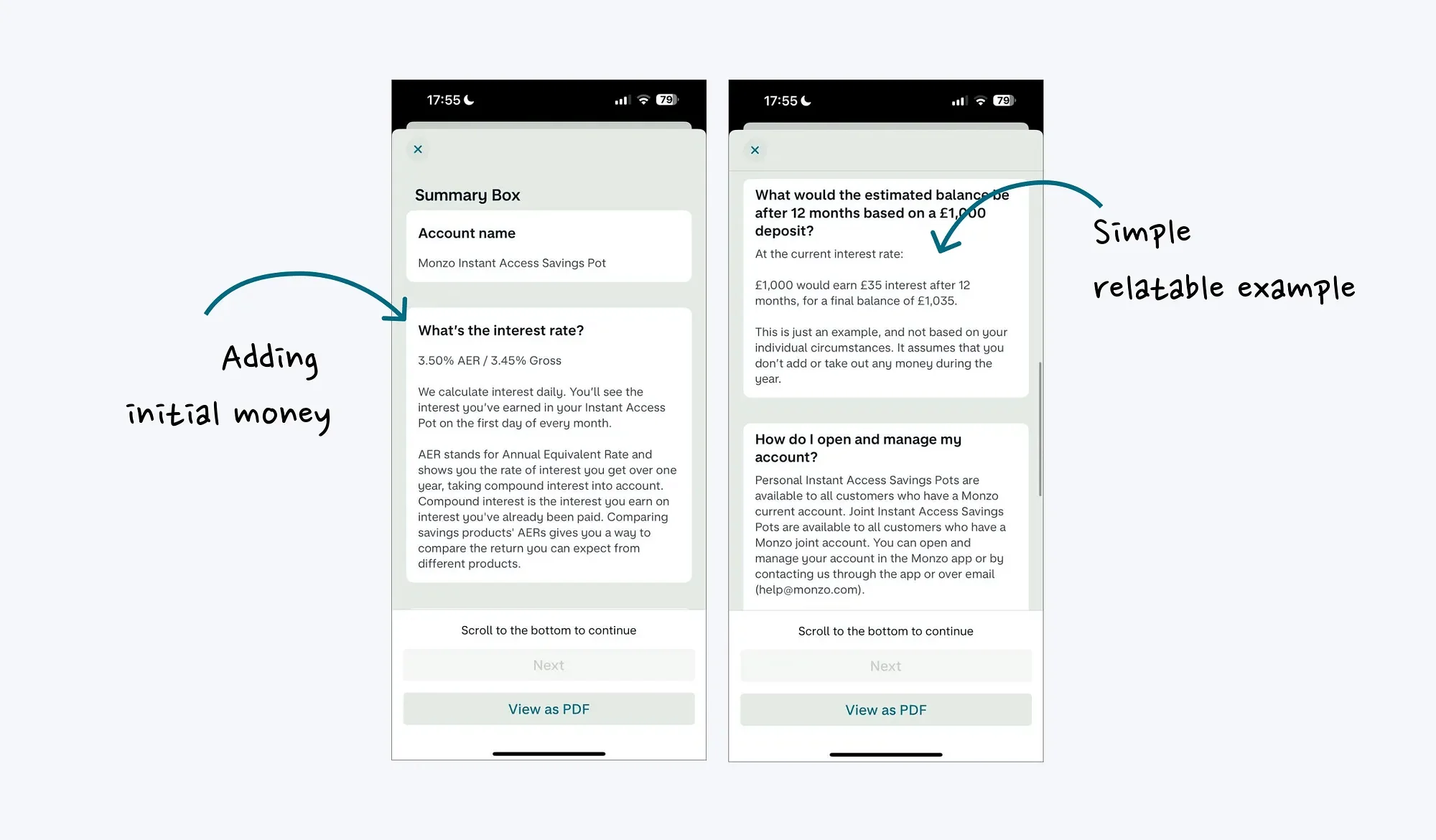 除此之外,实时地解释基于 1,000 美元投资的收益,是激励用户开设即时储蓄账户的另一种方法,即使他们对定期投资不感兴趣。