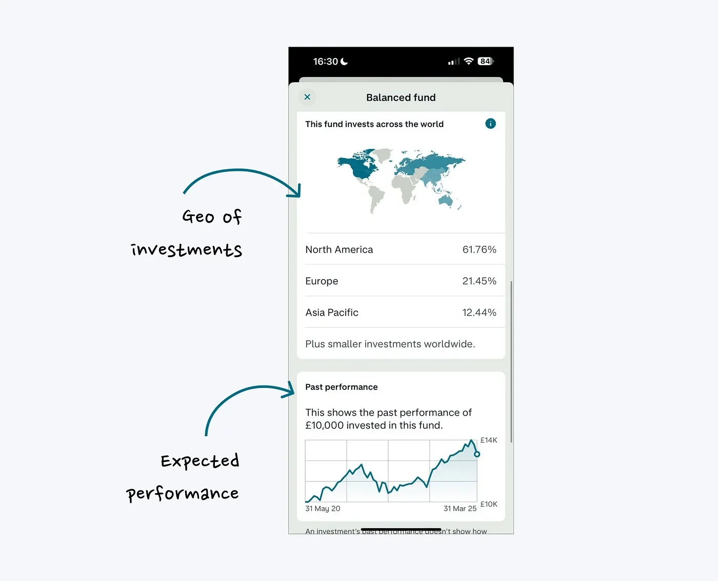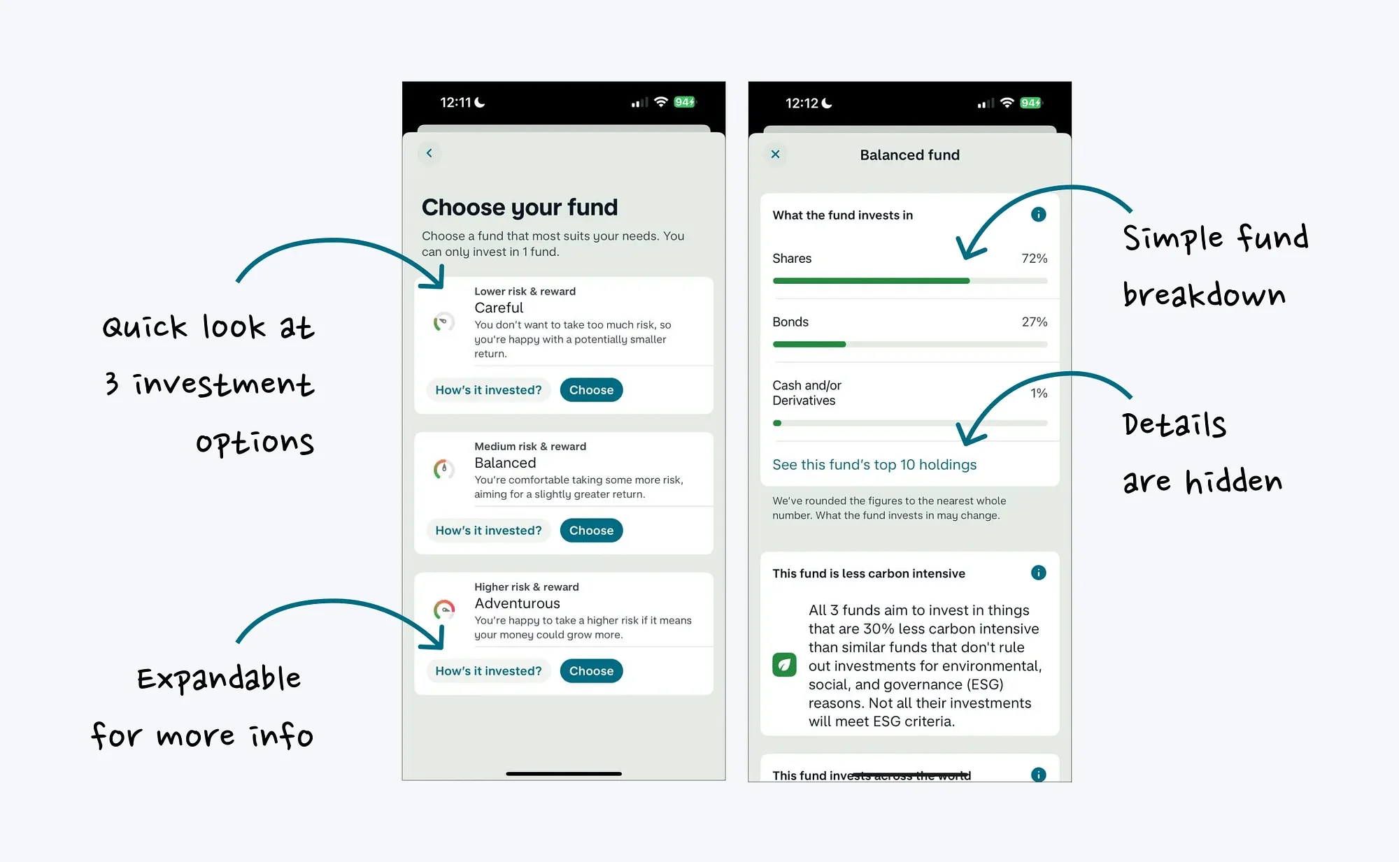 每只基金的简化摘要可帮助用户快速做出决策,而无需深入了解细节。Monzo 提供的信息恰到好处,让用户能够轻松掌握,而不会感到不知所措。