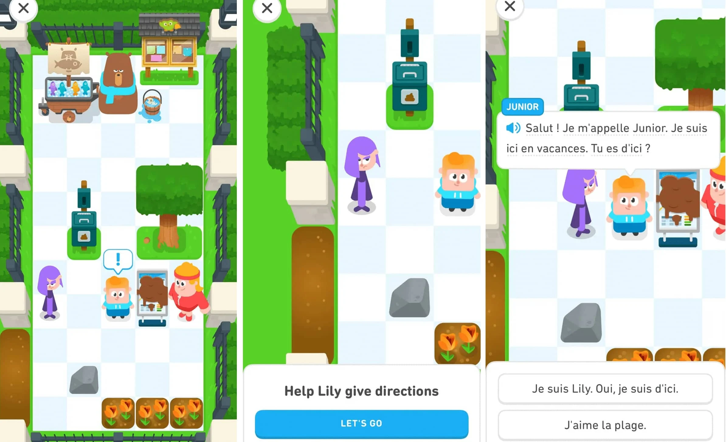 当你在 Duolingo 中代入某个角色时,不仅是在记忆单词——你正在真实地体验语言。冒险故事中的互动场景让你活用词汇,而非单纯地学习某种语言。